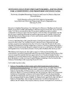Keystone Research Center Executive Director Stephen Herzenberg delivered Testimony on February 24, 2010 at a Pennsylvania House Labor Relations...
