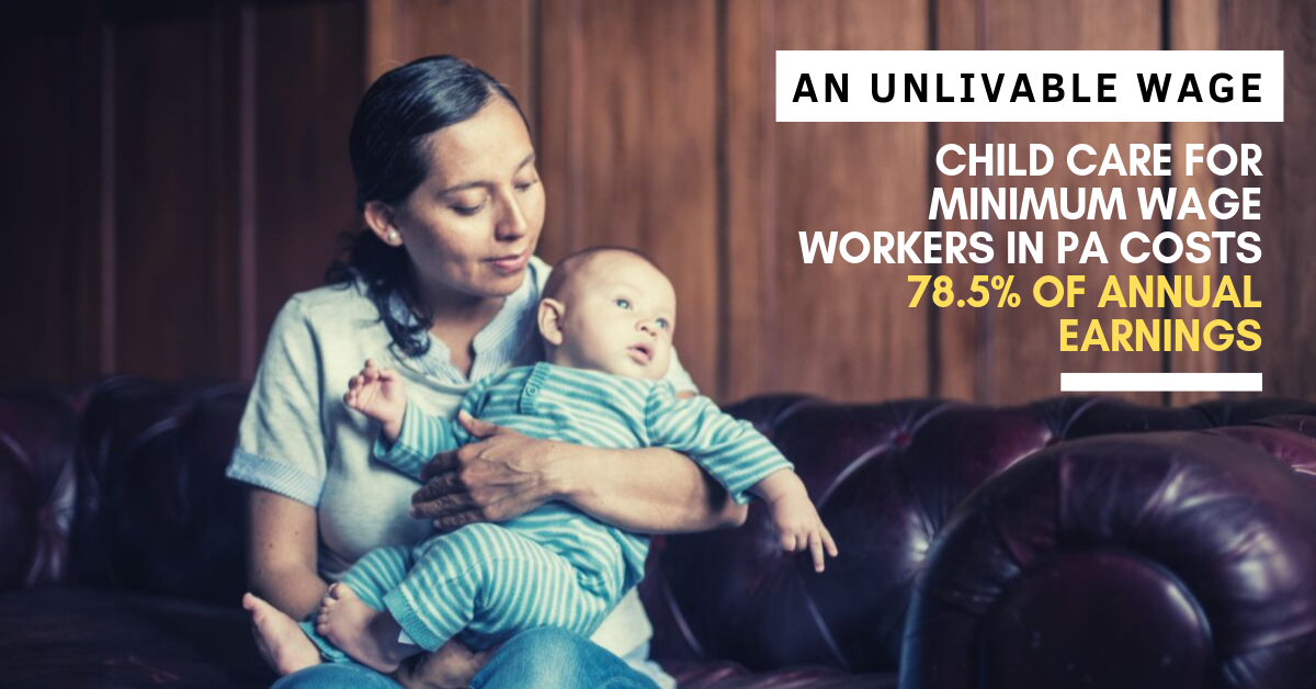 Child Care for Minimum Wage Workers in PA Costs 78.5% of Annual Earnings