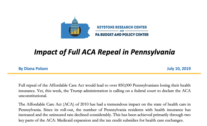 Read MoreFull repeal of the Affordable Care Act would lead to over 850,000 Pennsylvanians losing their health insurance. Yet, this...