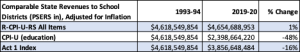 Table 2. State funding for K-12 education (excluding pension and charter school costs) between 1993-94 and 2019-2020 under three measures of inflation