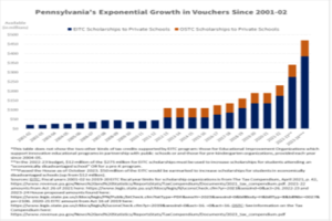 PENNSYLVANIA’S PRIVATE SCHOOL VOUCHERS: The state of Pennsylvania currently funds two types of private school voucher programs. These received a combined total of $470 million in PA taxpayer funds in 2023-24 and have received roughly $2.6 billion since 2001.