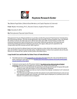 Pennsylvania’s House of Representatives may shortly consider the proposed “hybrid pension” developed by the Pennsylvania Senate. In this editorial board memo, we outline the key facts of the proposal and how the plan would significantly reduce benefits, increase taxpayer costs, and weaken the ability of schools and state agencies to attract and retain great staff.